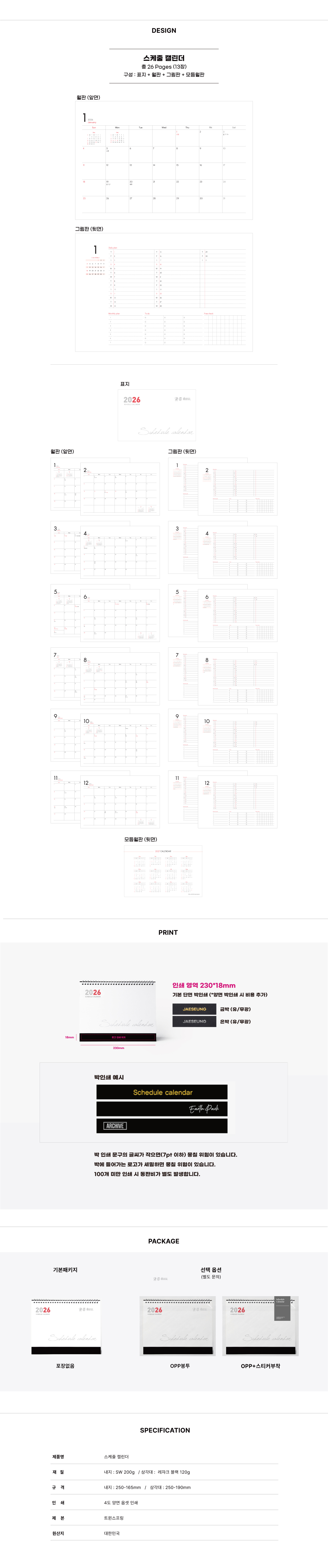 모던한 디자인의 아카이브가 직접 디자인한 기성캘린더.