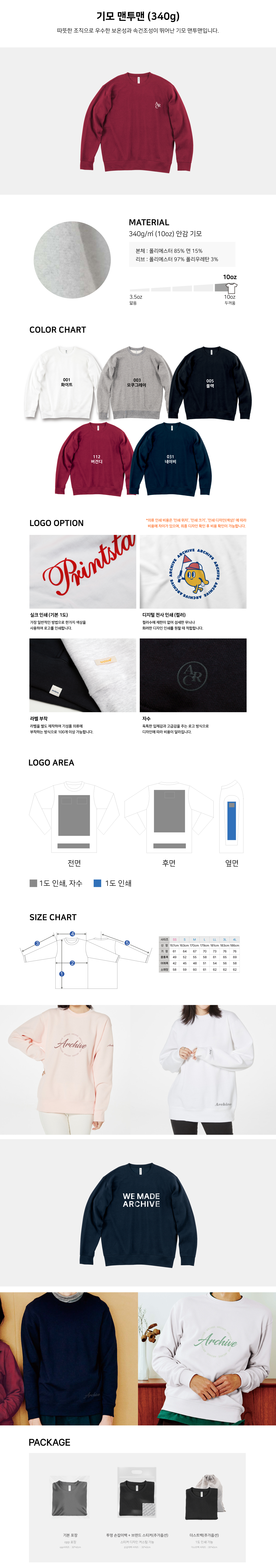 기모 맨투맨 340g (MS11)