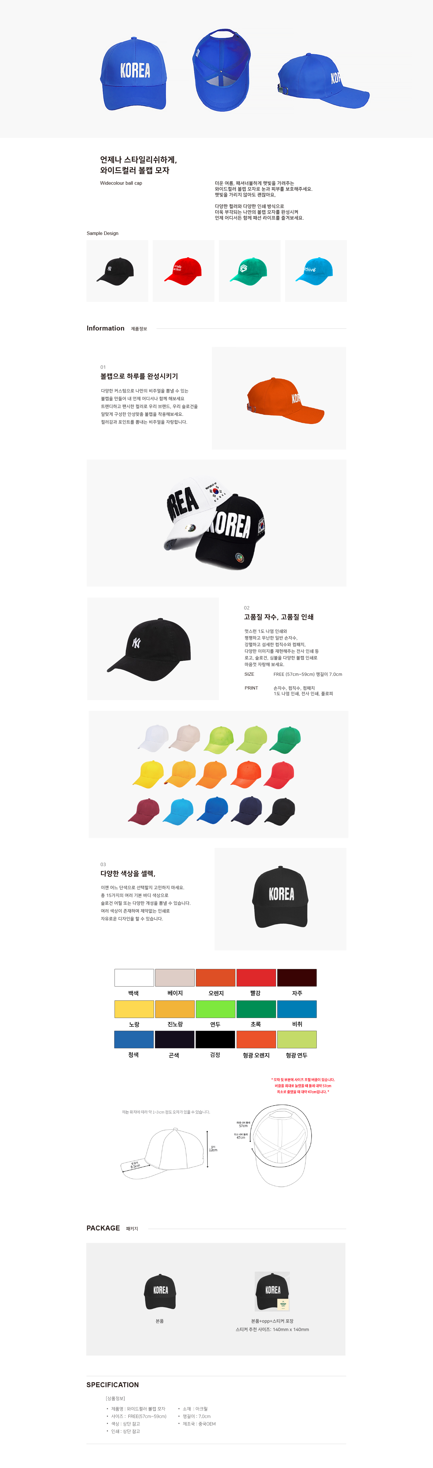 와이드컬러 볼캡 모자