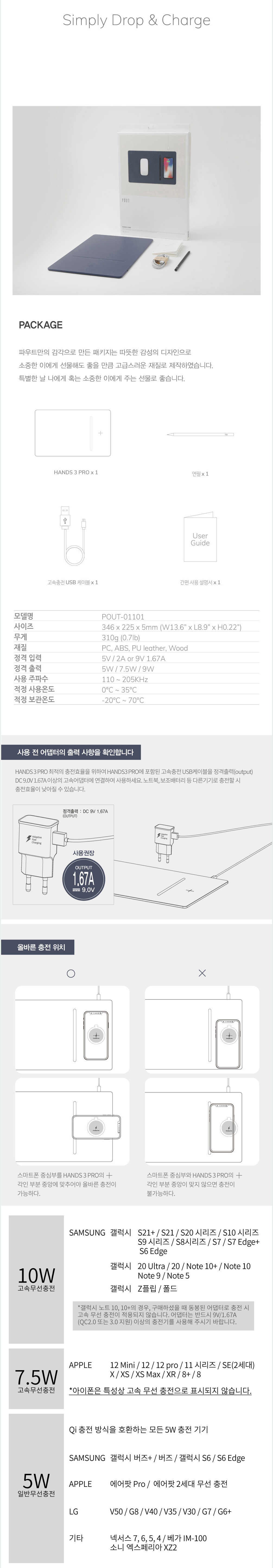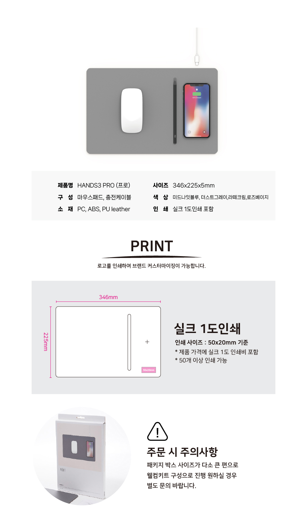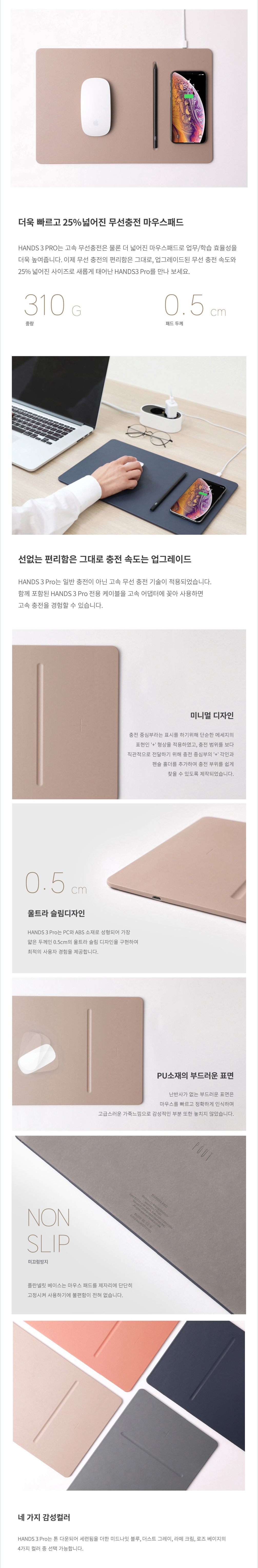 무선 충전 분리가 가능한, 초고속 마우스 패드, Hands Series