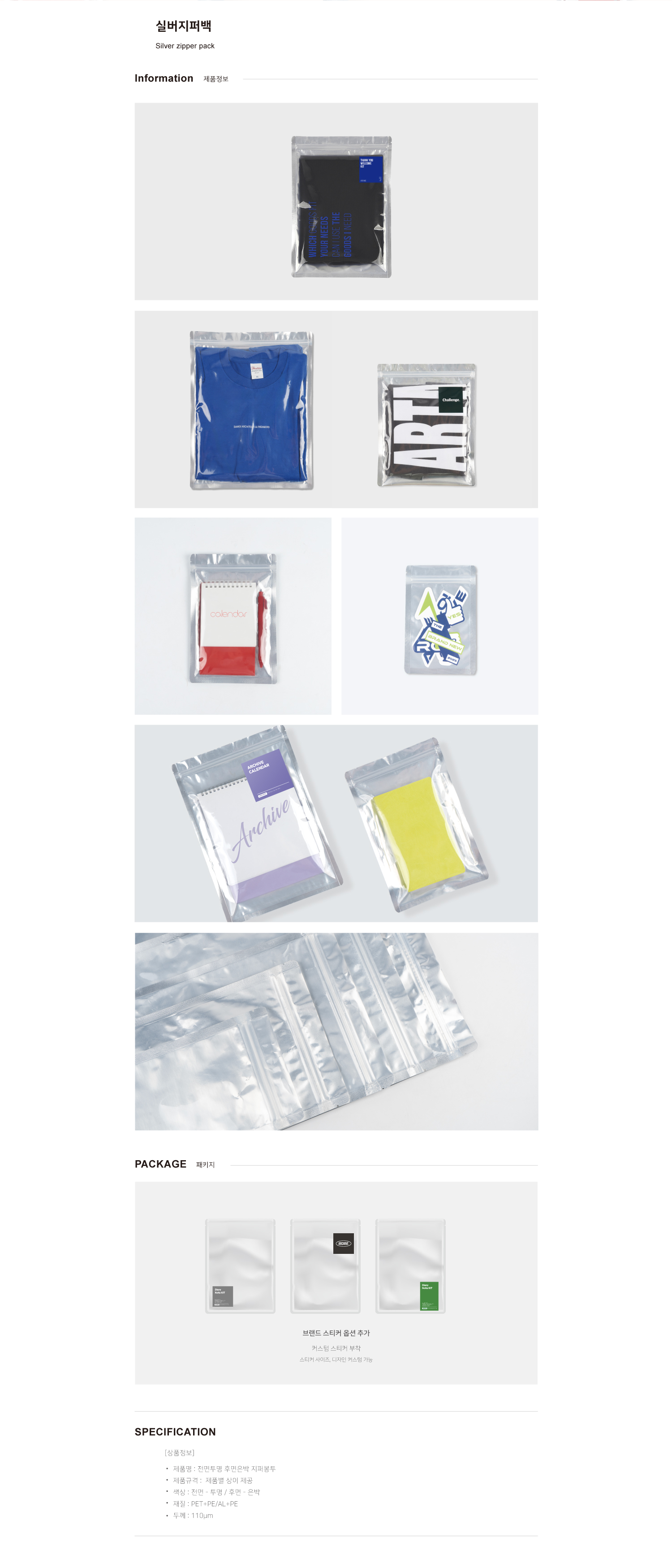 간편한 키트 구성에 가능한 지퍼봉투